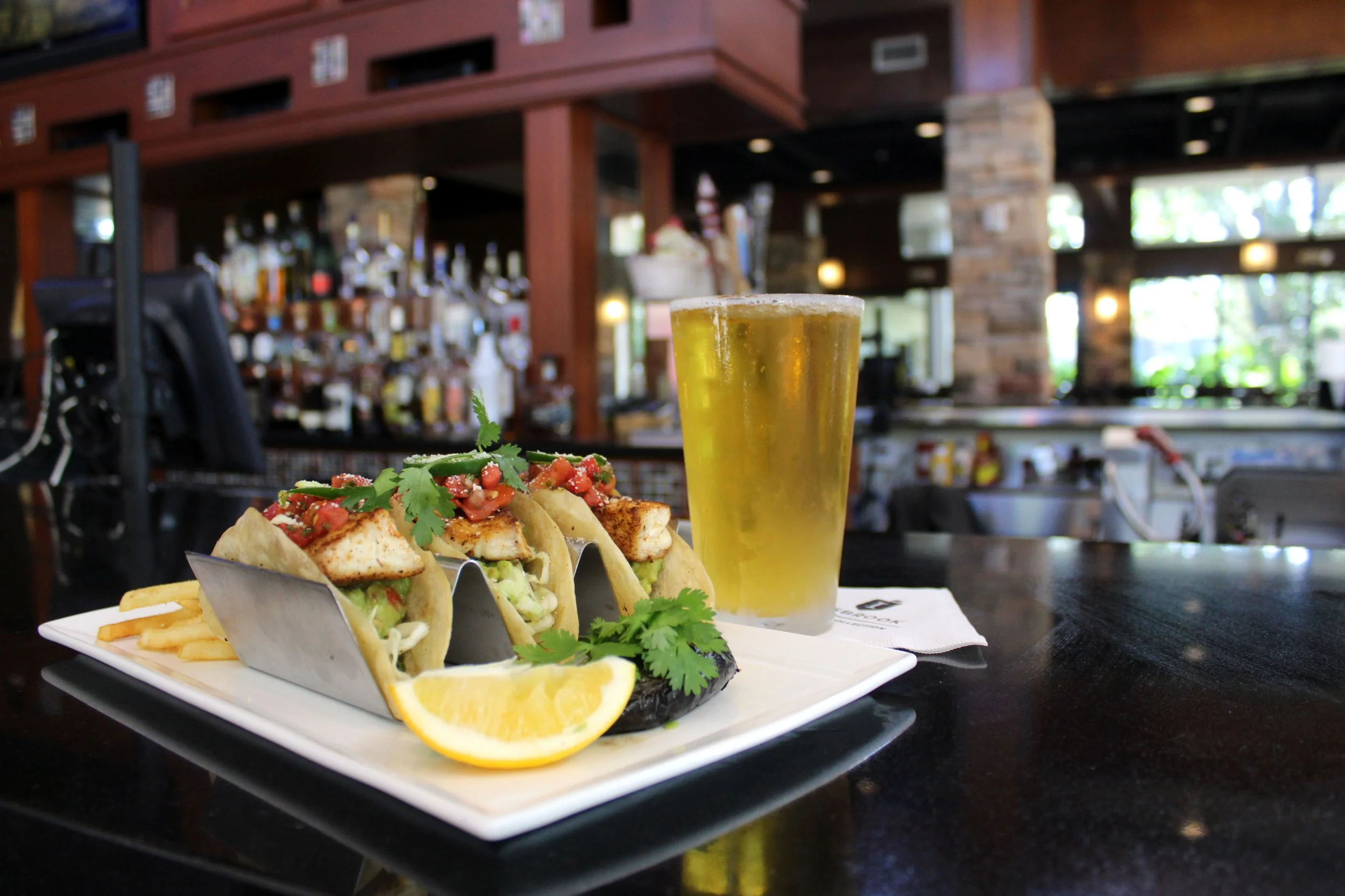 Lunch at the Copperhead grill post-round, featuring casual eats.