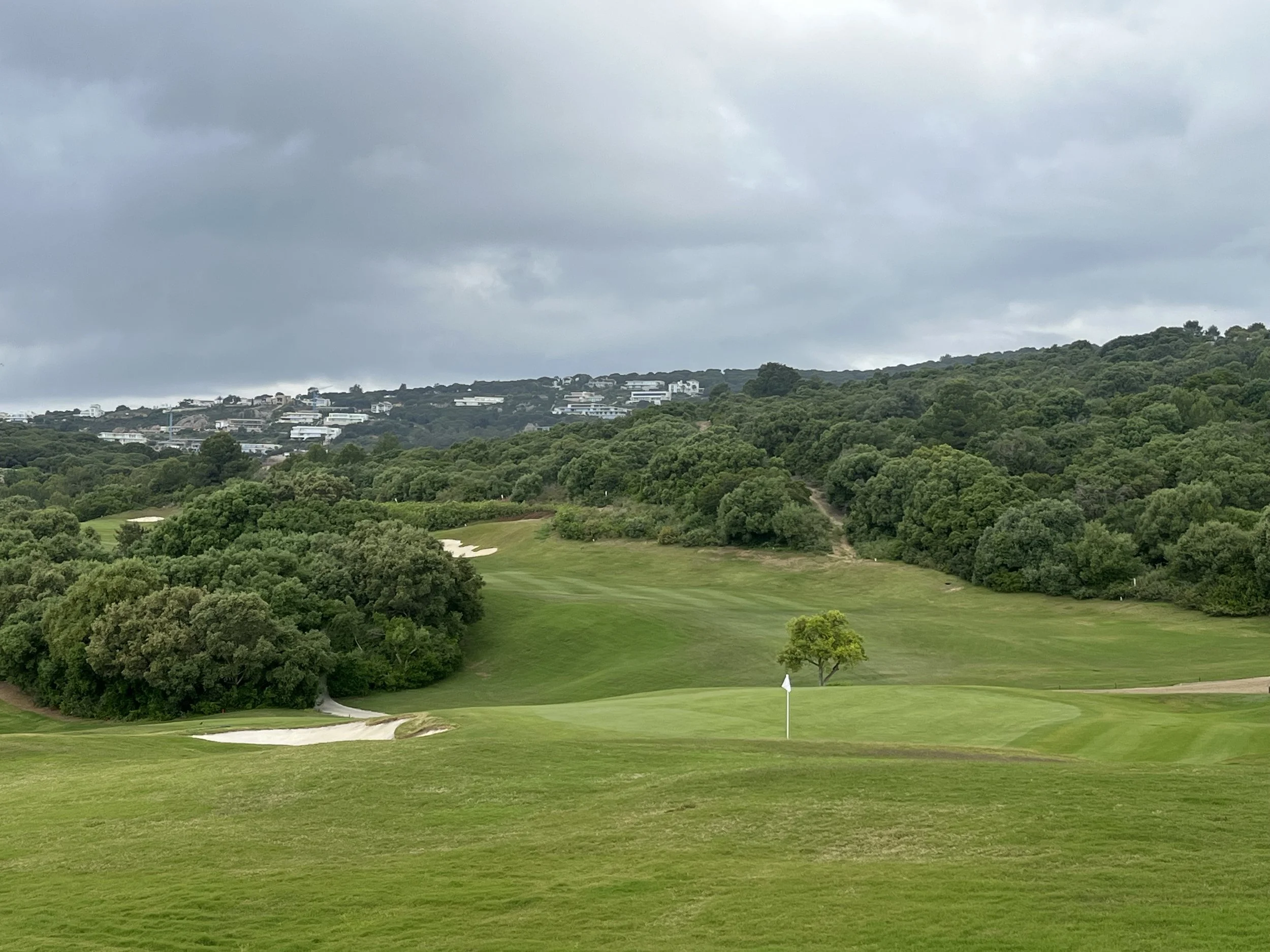 Sotogrande offers a more subtle and classic strategic examination than its more modern neighbors. It is a mature parkland course situated just 150 meters from the Mediterranean Sea, where the sea breeze can be a significant factor. While the fairways are generally wide and inviting, providing some forgiveness off the tee, the course's genius and primary defense lie in its brilliant green complexes. The greens are typically elevated, deceptively fast, and protected by a dazzling array of 69 strategically placed bunkers. Success at Sotogrande is dictated by the quality of one's approach shots. The beautiful and varied vegetation, a mixture of cork oaks, pines, eucalyptus, and palm trees, not only enhances the aesthetic appeal but also adds to the strategic challenge, demanding careful positioning on every hole.